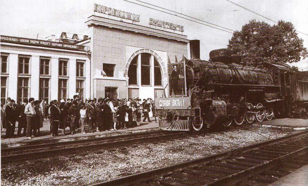 С чего начинается город? Конечно, с железнодорожного вокзала. Первый железнодорожный вокзал в Биробиджане был построен в 1930 г. по проекту инженера Сомхи. Здание было деревянное, барачного типа.