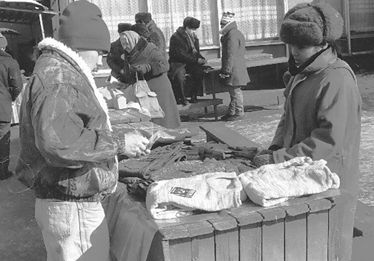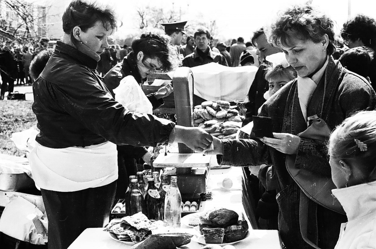 Главным местом закупки не только промтоваров, но и продуктов собственного изготовления, конечно, был центральный рынок. Мясо, овощи, вязанные шапки, шарфы, носки, закрутки, поделки и прочее — можно было найти здесь. К тому же, здесь люди обменивались как последними новостями страны, так и местечковыми слухами.