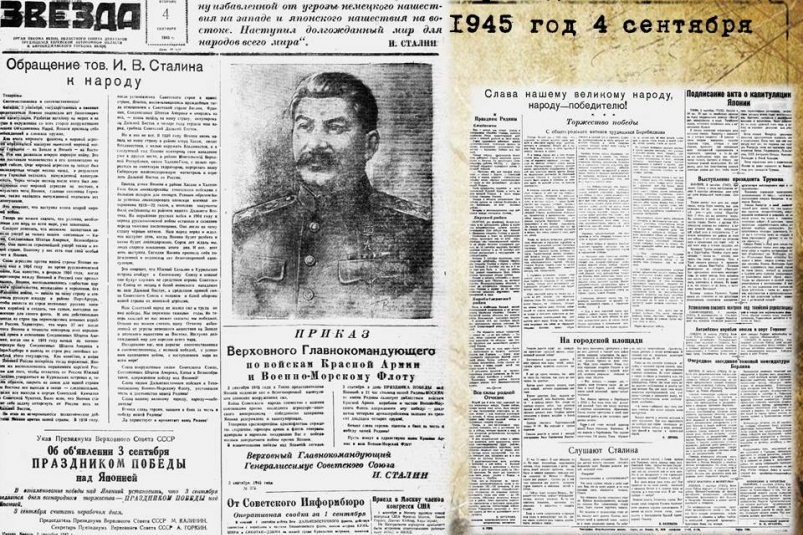"В ознаменовании победы над Японией установить, что 3 сентября является днем всенародного торжества — ПРАЗДНИКОМ ПОБЕДЫ над Японией.
