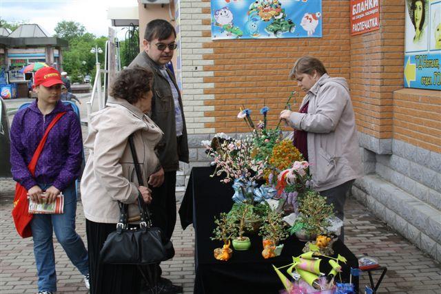 Выставка разместилась под стенами одного из торговых центров на очень бойком месте. И сразу же столы, на которых были выставлены экспонаты, облепили прохожие.