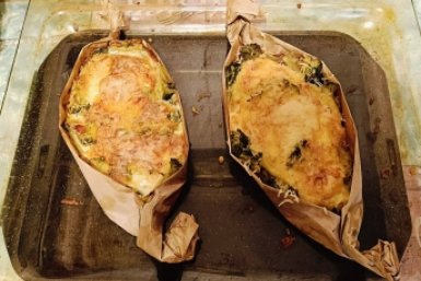 Духовку разогреваем до 220°C. Запекаем мясо около 15 минут, чтобы все продукты просто схватились, а стейк не пересушился и остался сочным. Украшаем блюдо зеленью: петрушкой и зеленым луком.
