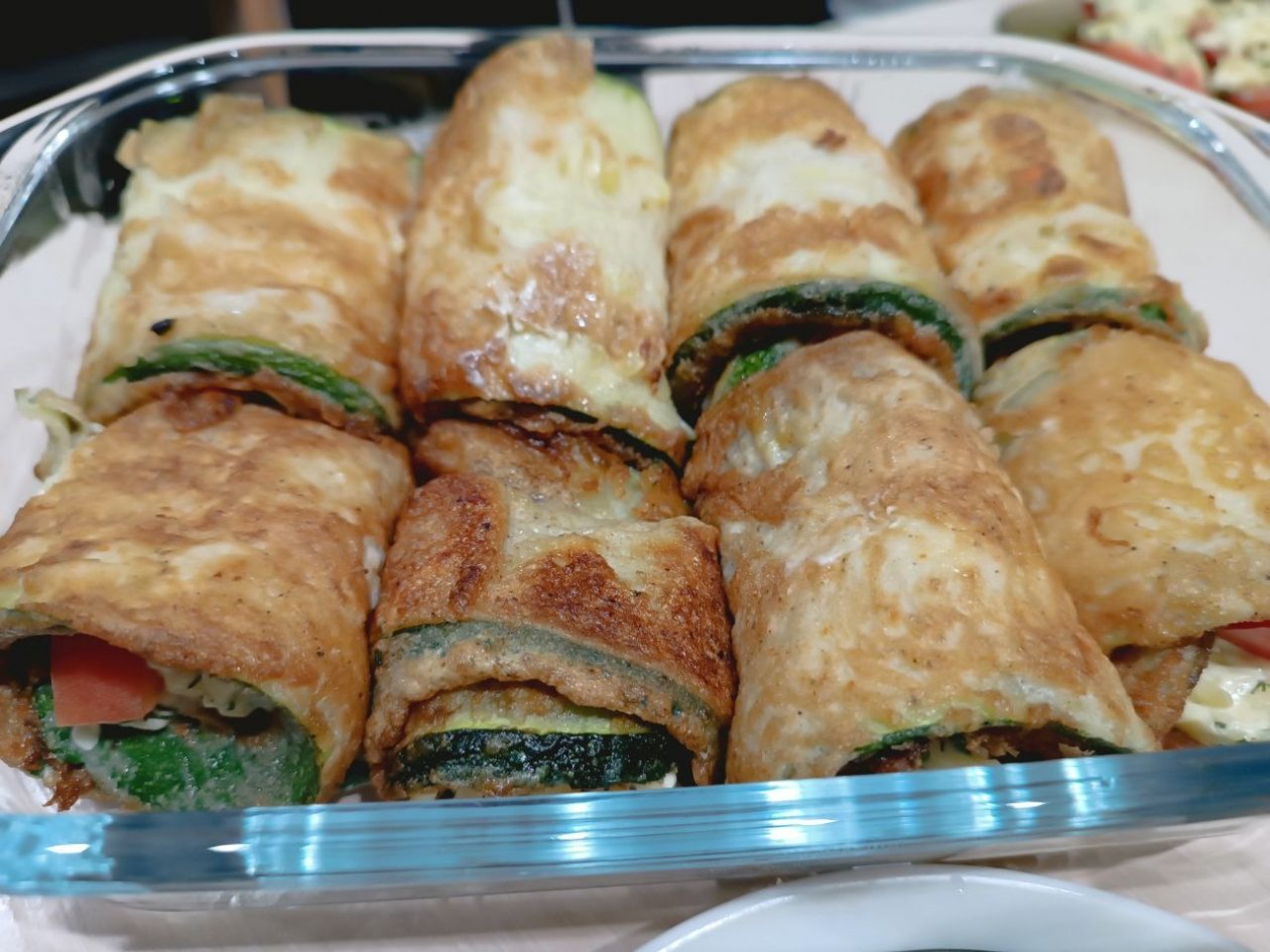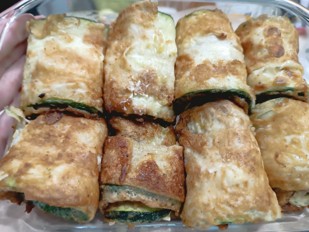 Сверните кабачки в рулетики и можно подавать сразу к столу.
