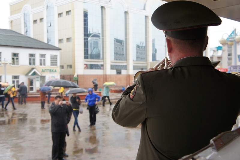 Несмотря на непогоду, биробиджанцы не проходили мимо, а останавливались, чтобы послушать живую музыку, а некоторые даже пританцовывали.