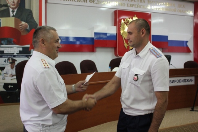 От имени руководства Управления министерства внутренних дел по Еврейской автономной области сотрудников ГИБДД с профессиональным праздником поздравил заместитель начальника УМВД России по ЕАО полковник полиции Игорь Хайбулов. Он поблагодарил личный состав за добросовестную службу, ветеранов - за профессионализм. Зачитал поздравительную телеграмму министра МВД России В. А. Колокольцева, а также вручил нагрудные знаки "За отличие в службе", денежные премии и объявил благодарности. К поздравлениям присоединился начальник ОГИБДД полковник полиции Олег Кусков.