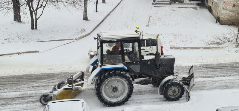 В случае продолжающегося снегопада техника будет работать до утра. Если прекратится, то МАЗы разделятся на подсыпку автодорог, а МТЗ пойдут на расчистку тротуаров.
