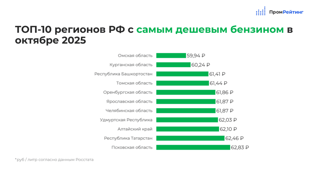 Список регионов с самым дешевым дизелем, а также с самым доступным и дорогим бензином, выглядит следующим образом: