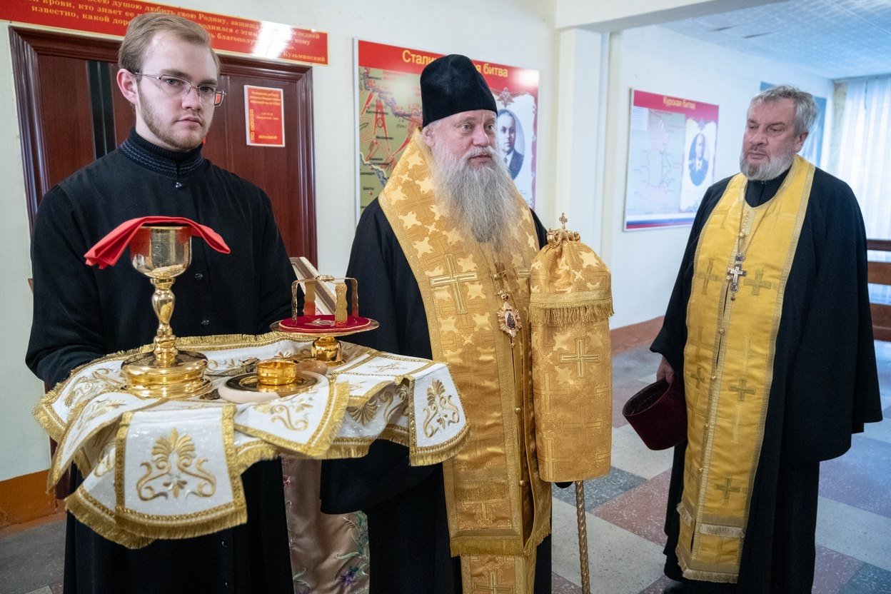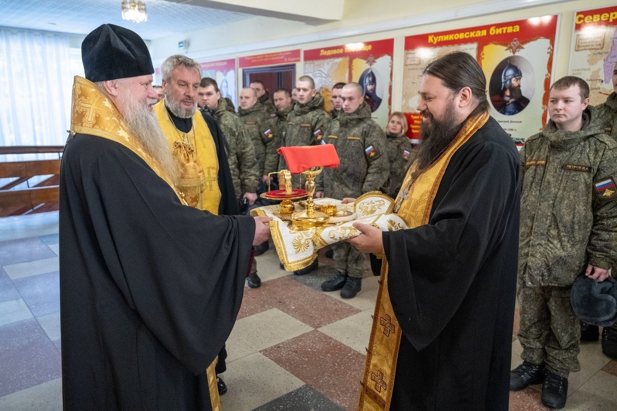 В ознаменование визита Владыка преподнёс в дар воинскому храму набор богослужебных сосудов и принадлежностей.