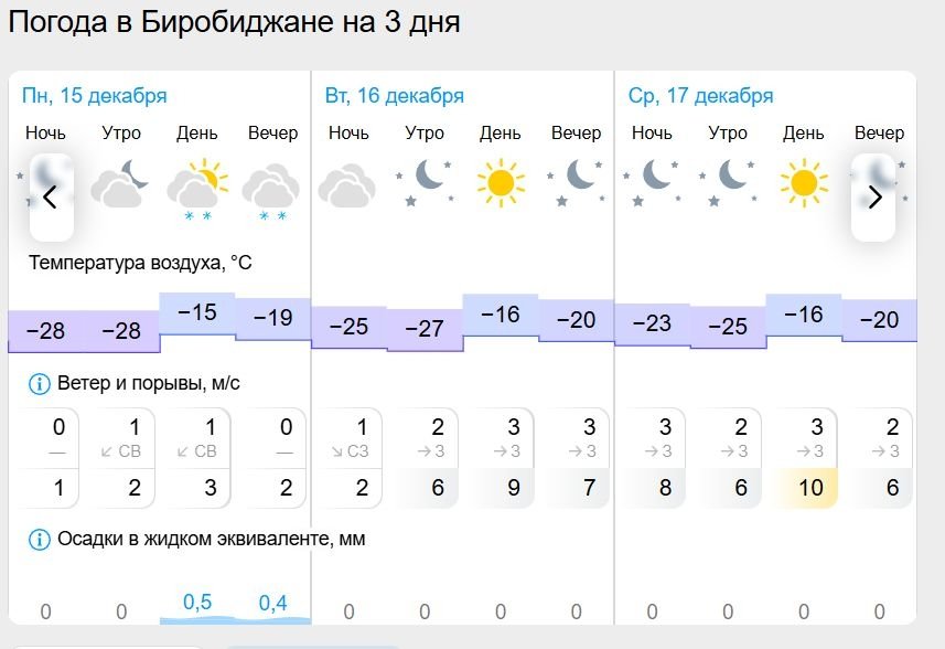 EAOMedia, 14 декабря. ИА ЕАОMedia предлагает читателям ознакомиться с прогнозом погоды в ЕАО, подготовленным на основании данных Гисметео и центра погоды "Фобос".