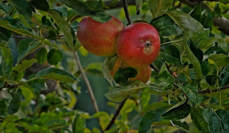 Кора чистая и здоровая, а урожай настолько обильный, что веткам требуется подпорка.