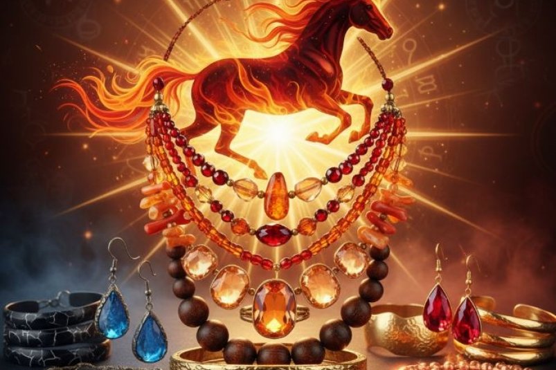 Лучше всего встретить Новый год в украшениях из натуральных камней. Особенно приветствуются прозрачные, теплые и огненные оттенки: янтарь, гранат, цитрин, сердолик, коралл, яшма. Отличный выбор — аксессуары из золота, бронзы, дерева, художественно сочетающие огненную гамму: красный, оранжевый, золотистый, персиковый. Подойдут изделия с лошадьми, огненными символами, солнечными мотивами. Легкие, изящные, естественные украшения, сияющие на свету — так вы обязательно понравитесь Лошади и зарядитесь энергией ее удачи.