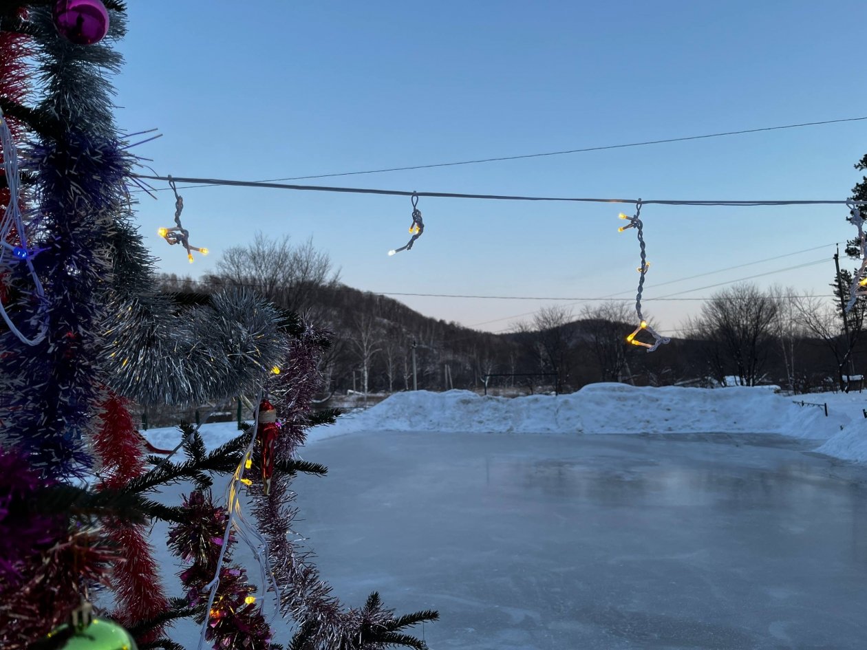 Каток, елка и оформление: новогодний уголок создал во дворе дома житель г. Облучье ЕАО