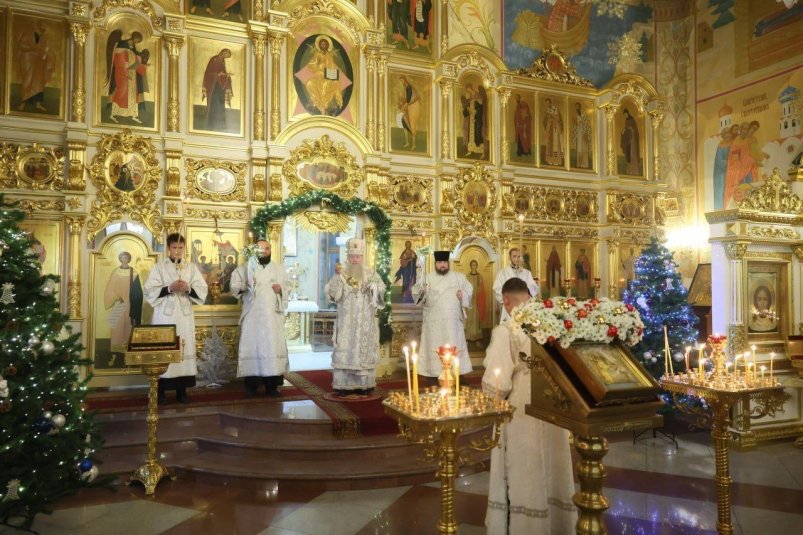 На праздничной службе, которую в Благовещенском кафедральном соборе возглавил Преосвященнейший Лука, епископ Биробиджанский и Кульдурский, все вместе склонились в молитве перед Новорождённым Богомлаленцем.