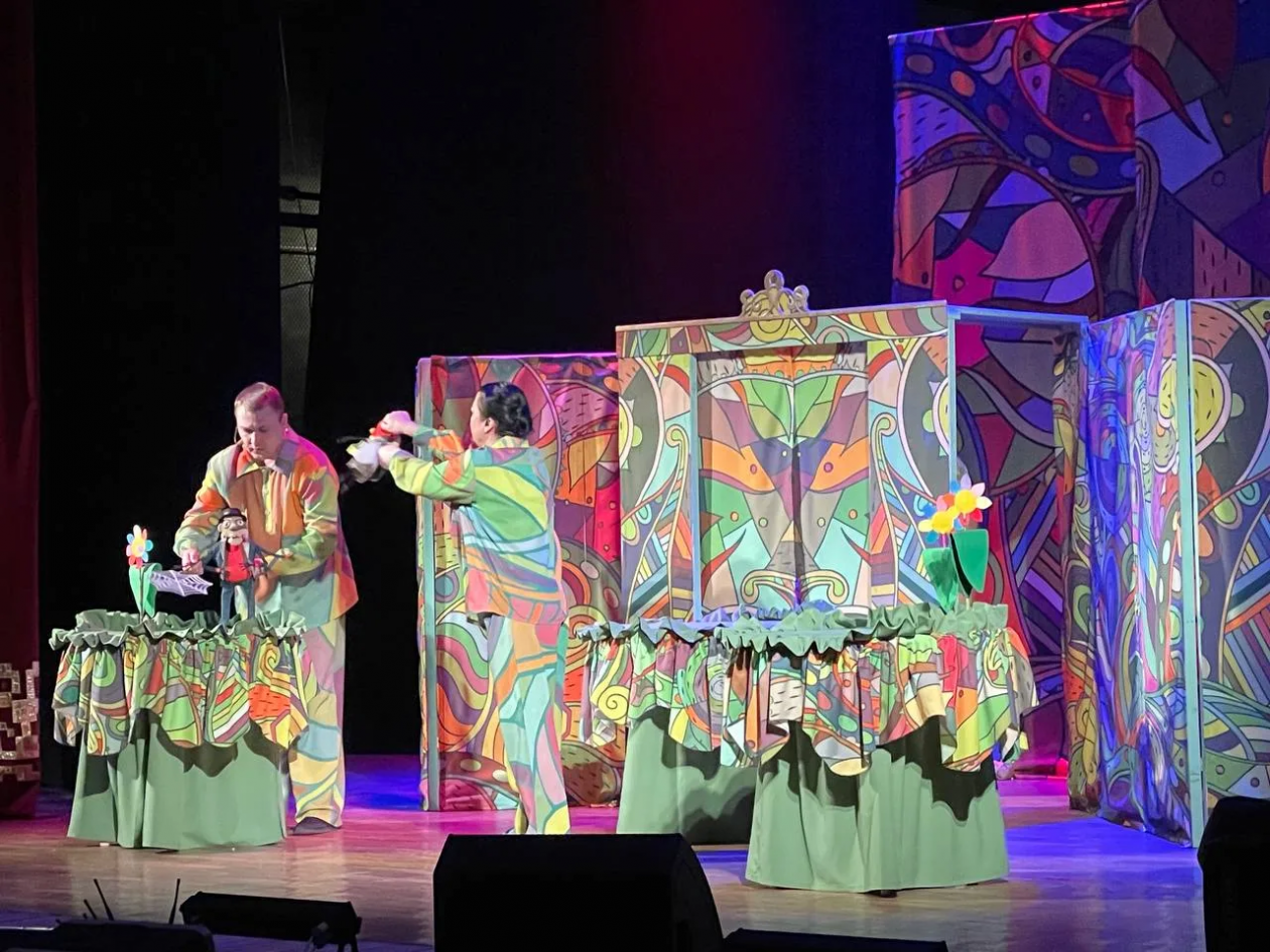 Гостей мероприятия ждал добрый спектакль "Муха-Цокотуха" (0+), подготовленный артистами театра кукол "Кудесник" на сцене городского Дворца культуры. Красочные декорации, живые персонажи и знакомая с детства история вызвали у юных зрителей искренний восторг: дети смеялись, удивлялись и с радостью пели знакомые строчки.