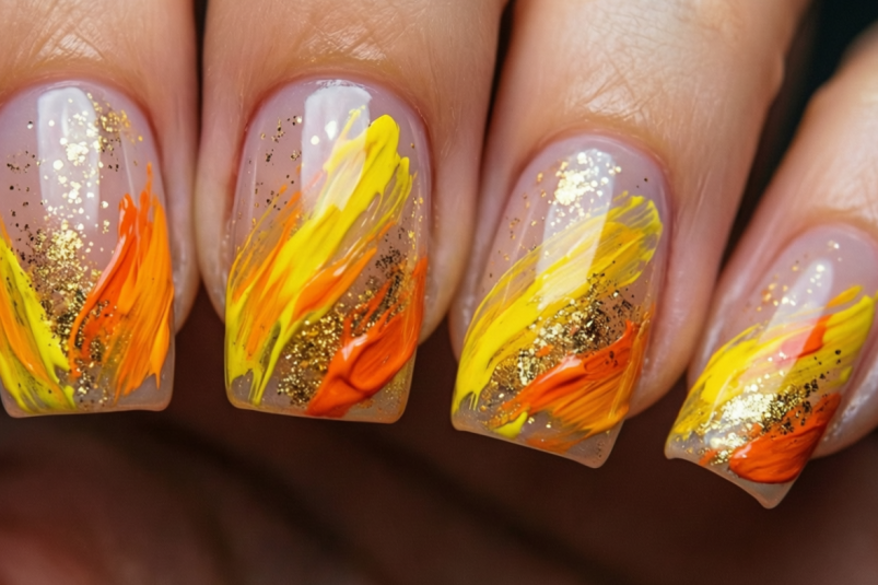 Лев: любит роскошь и внимание. Золото, бронза, яркий оранжевый или солнечный желтый — отличные варианты. Смело используйте дизайн с фольгой, стразами, глиттером.