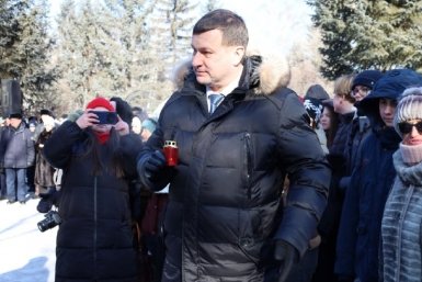 От имени главы ЕАО Марии Костюк выступил заместитель губернатора Антон Акимов. Поэт Роман Файн прочитал пронзительное стихотворение.