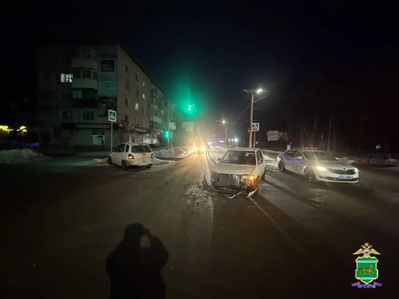 В 17.55 по ул. Пионерской в Биробиджане водитель 1975 рождения, управляя автомобилем "Тойота Королла Спасио", выехал на регулируемый перекресток на зеленый сигнал светофора и, поворачивая налево, не уступил дорогу движущемуся автомобилю "Мазда Демио". Произошло столкновение.