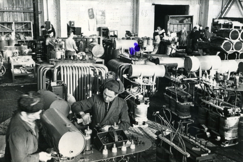 Цех № 3 завода силовых трансформаторов. Сборка трансформаторов на автоматической линии, которую обслуживает один рабочий. 1977 г.. Фото: Фото: Госархив ЕАО