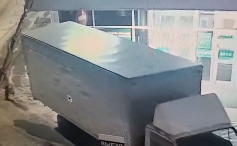 В 22.12 в районе дома 58 по ул. Советской в Биробиджане водитель автомобиля "Мицубиси Фусо" не учел высоту до карниза торгового центра и повредил его.