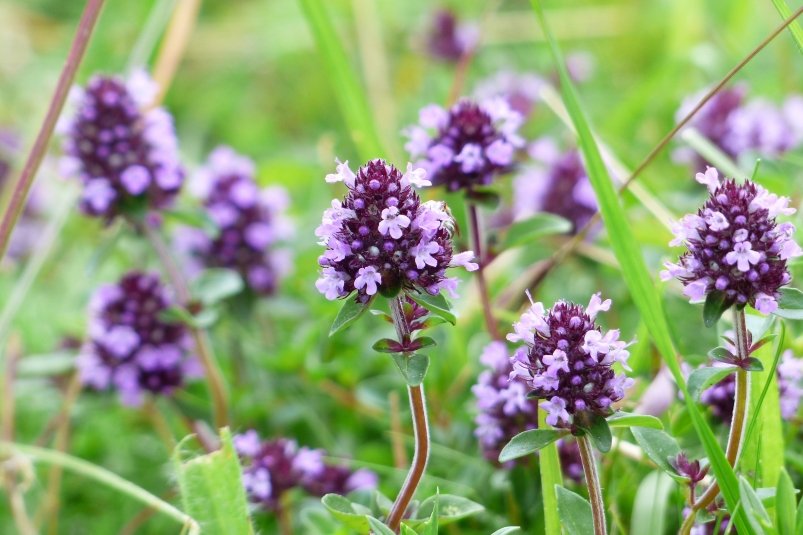 После высадки поливайте умеренно, пока растения не укоренятся. В дальнейшем большинство из них обходятся дождевой водой. Раз в сезон можно подкормить компостом, химические удобрения им не нужны. После первой волны цветения слегка подрежьте шалфей и лаванду: это простимулирует повторное цветение и сохранит аккуратную форму куста. Чабрец вообще не требует стрижки, он сам формирует плотный ковёр.