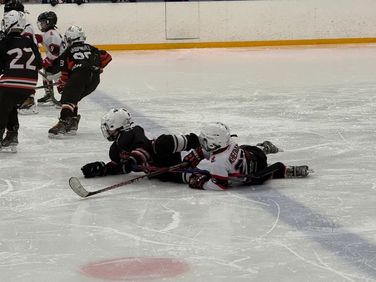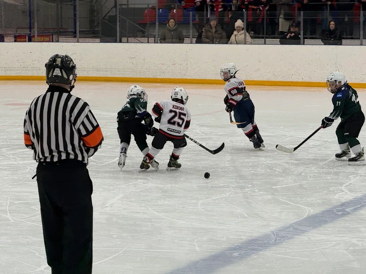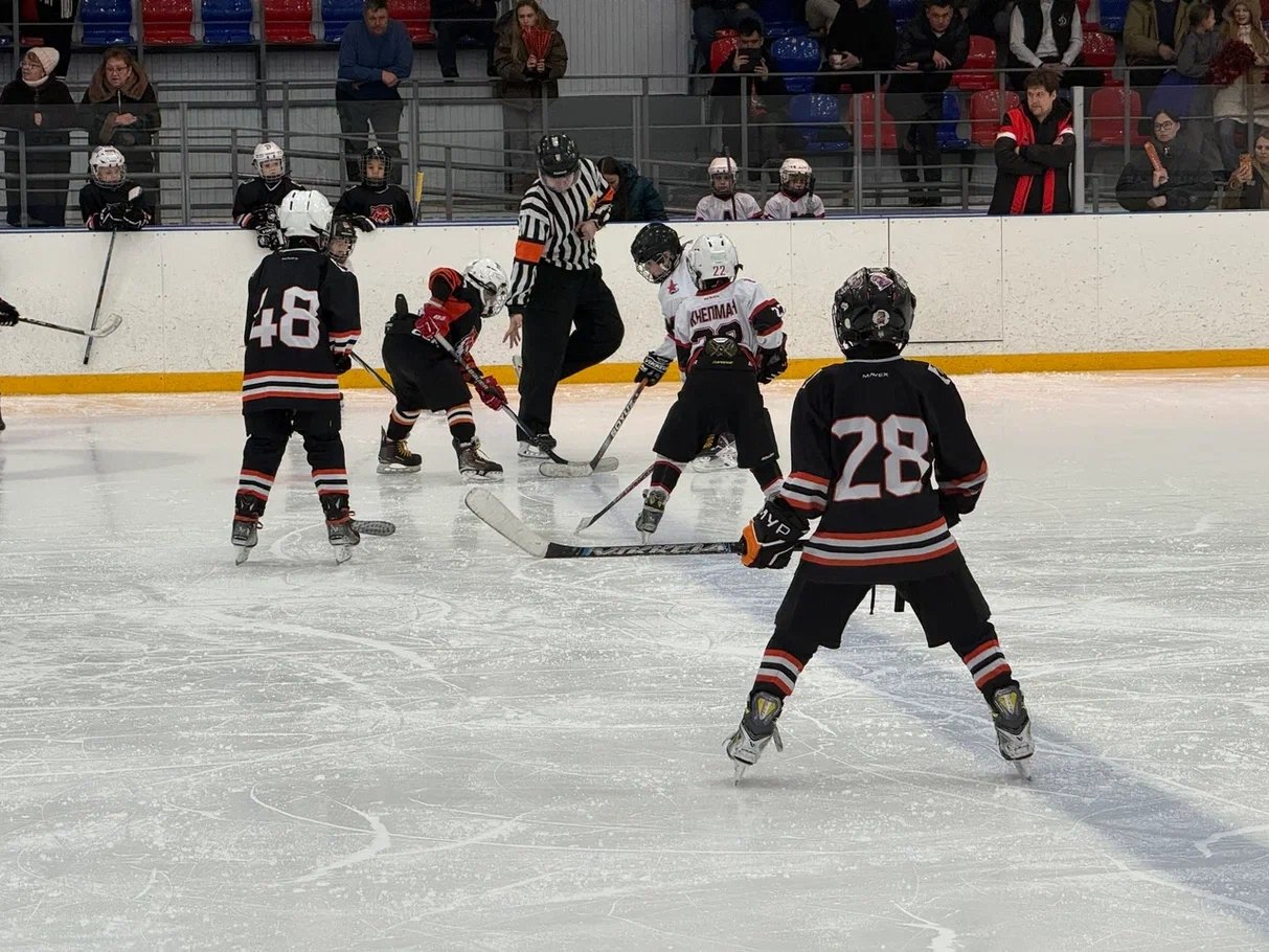 Примечательно, что юные хоккеисты играли на двух полях одновременно. Это сделано для экономии времени, а также для удобства ребят: играть на полноразмерной ледовой арене им еще рано.