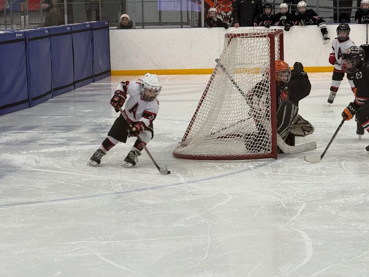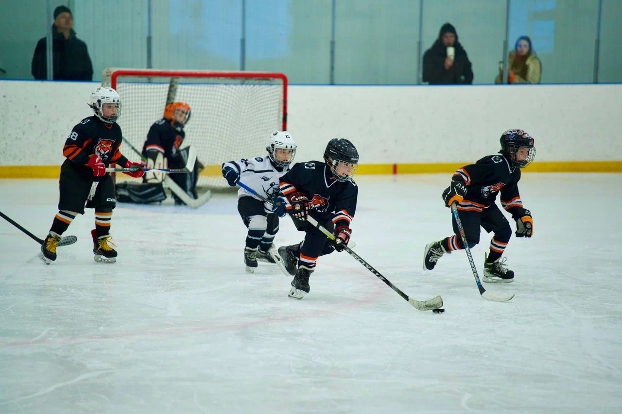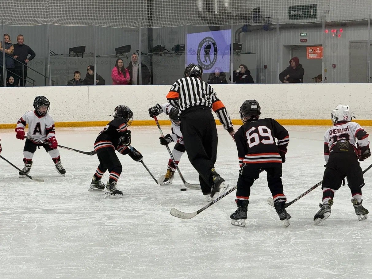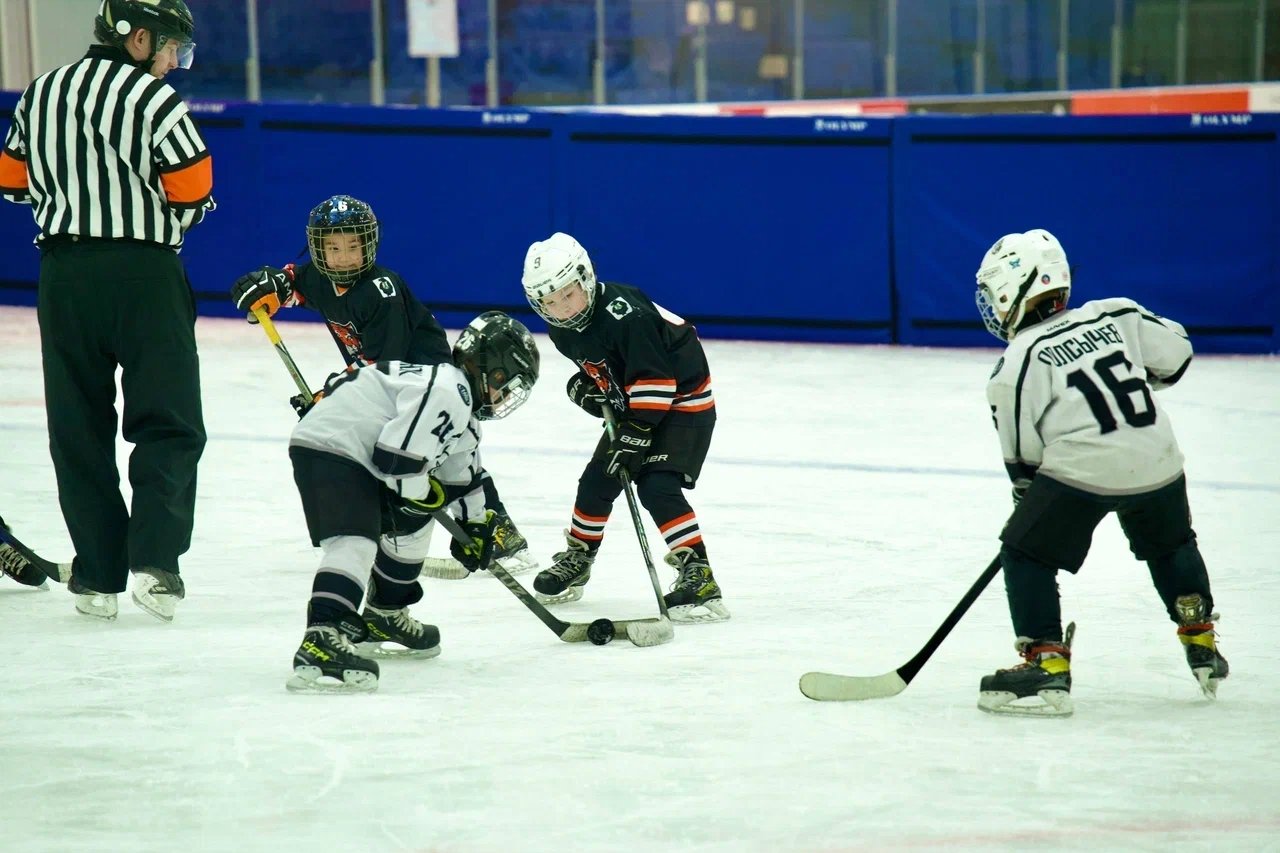 Примечательно, что юные хоккеисты играли на двух полях одновременно. Это сделано для экономии времени, а также для удобства ребят: играть на полноразмерной ледовой арене им еще рано.