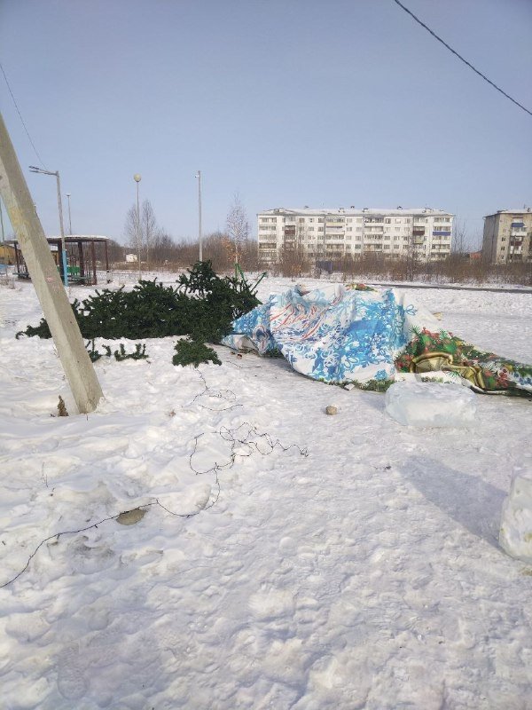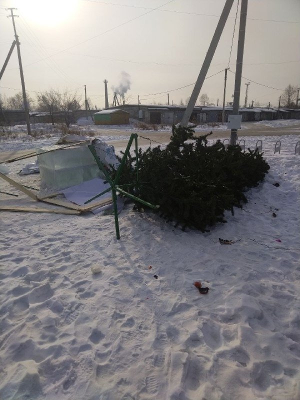 EAOMedia, 9 февраля. К трагедии мог привести акт вандализма на ул. Юбилейной в Биробиджане. На территории общественного пространства была установлена новогодняя ель, но она, видимо, кому-то очень сильно помешала. Вандалы ее полностью уничтожили, сообщил в своем тг-канале (18+) мэр Биробиджана Алексей Кузьмин.
