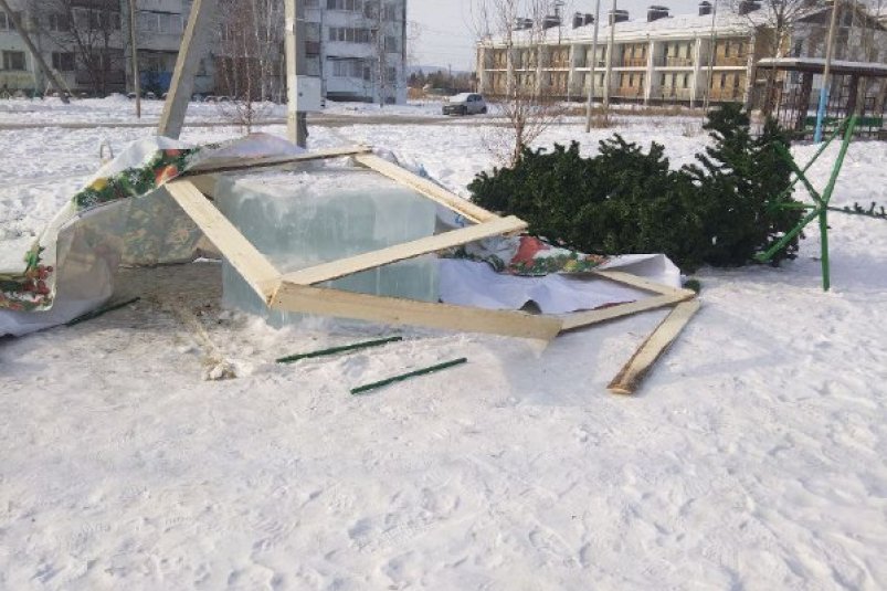 "Сорваны и не подлежат восстановлению все шары и украшения, уничтожены ключевые конструктивные элементы, металлические крепления на стропах переломаны пополам. Судя по всему, злоумышленники с агрессией уничтожали дворовое украшение. Опорная конструкция не подлежит восстановлению.