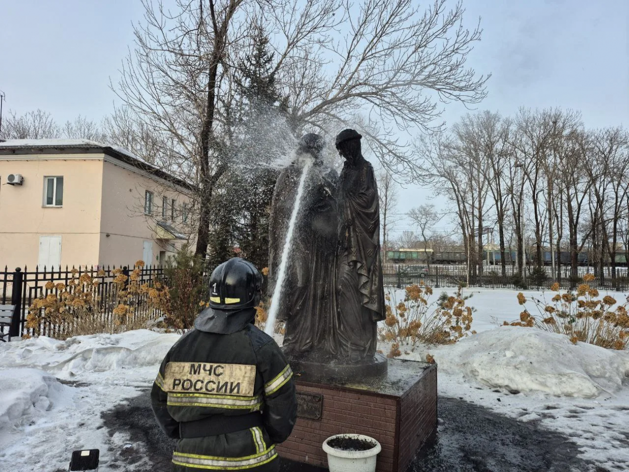 EAOMedia, 10 февраля. Неизвестные сегодня подожгли памятник Святым Петру и Февронии Муромским на территории Благовещенского кафедрального собора в Биробиджане. МЧС ликвидировало возгорание, но памятник сильно поврежден, злоумышленников ищут правоохранители, сообщила в своем тг-канале (18+) губернатор ЕАО Мария Костюк.