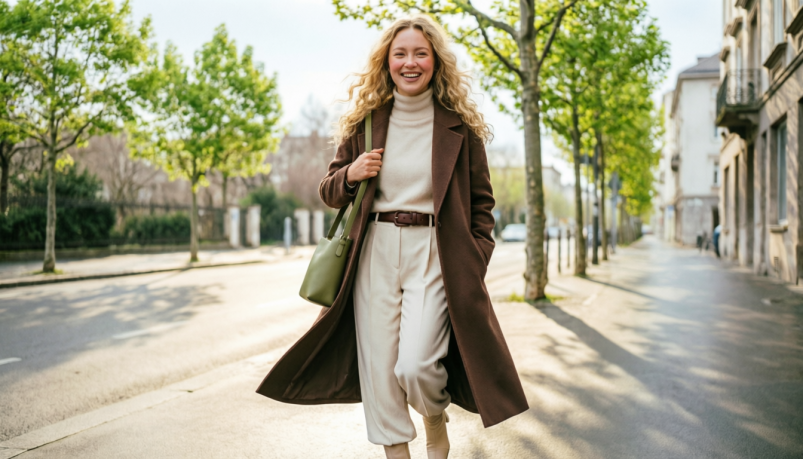 При выборе пальто стоит уделить внимание материалу. Лучший вариант — плотная шерсть или шерсть с добавлением кашемира без лишнего блеска. Такие ткани смотрятся дорого и долго сохраняют красивый вид.