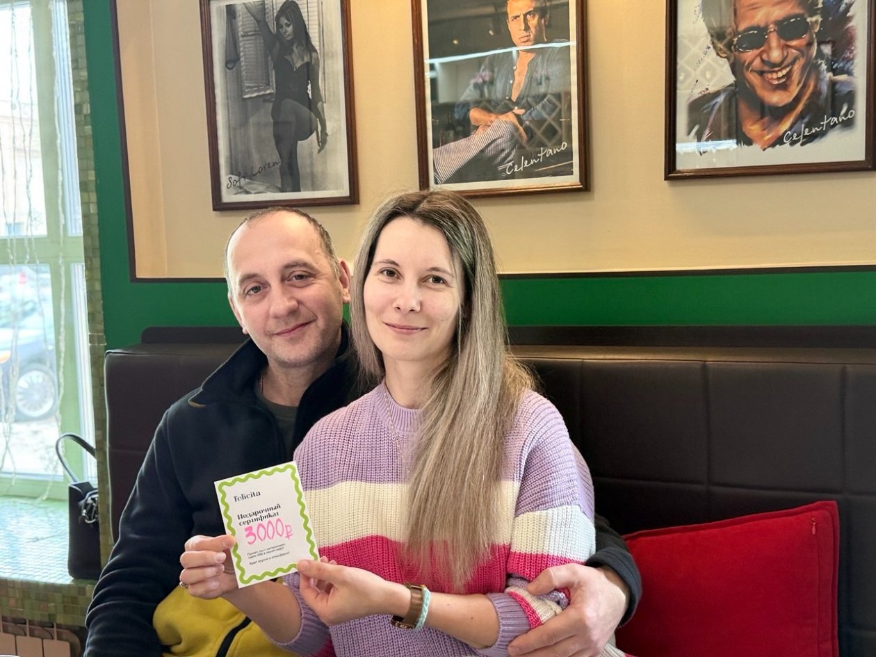 По итогам конкурса сертификат на романтический ужин в кафе на сумму 3000 рублей получила наша подписчица Виктория.