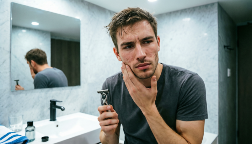 Если заметили, что после бритья прыщей становится больше, попробуйте бриться реже или не слишком тщательно — иногда это помогает коже восстановиться. При бритье обходите воспаленные участки, чтобы не травмировать их.
