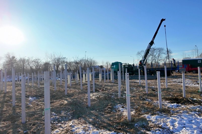 В конце января текущего года подрядной организацией завершено устройство фундамента из буронабивных свай. На следующем этапе планируется укрепить тело фундамента и прилегающую территорию с использованием скального грунта. Строительные работы ведутся согласно графику.