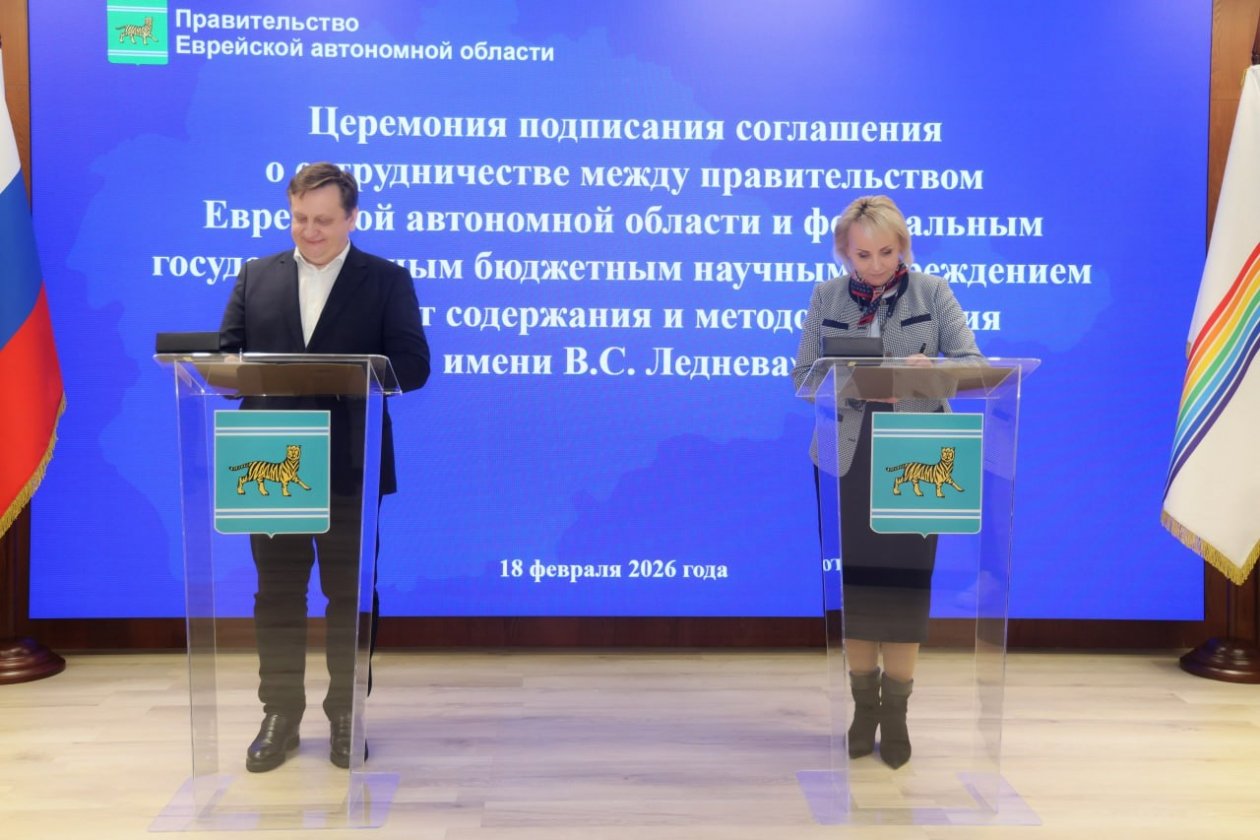 EAOMedia, 19 февраля. Губернатор ЕАО Мария Костюк подписала соглашение о сотрудничестве с Федеральным государственным бюджетным научным учреждением "Институт содержания и методов обучения имени В.С. Леднева". Документ направлен на реализацию совместных проектов в сфере общего образования и повышение качества подготовки школьников, сообщает правительство Еврейской автономии.