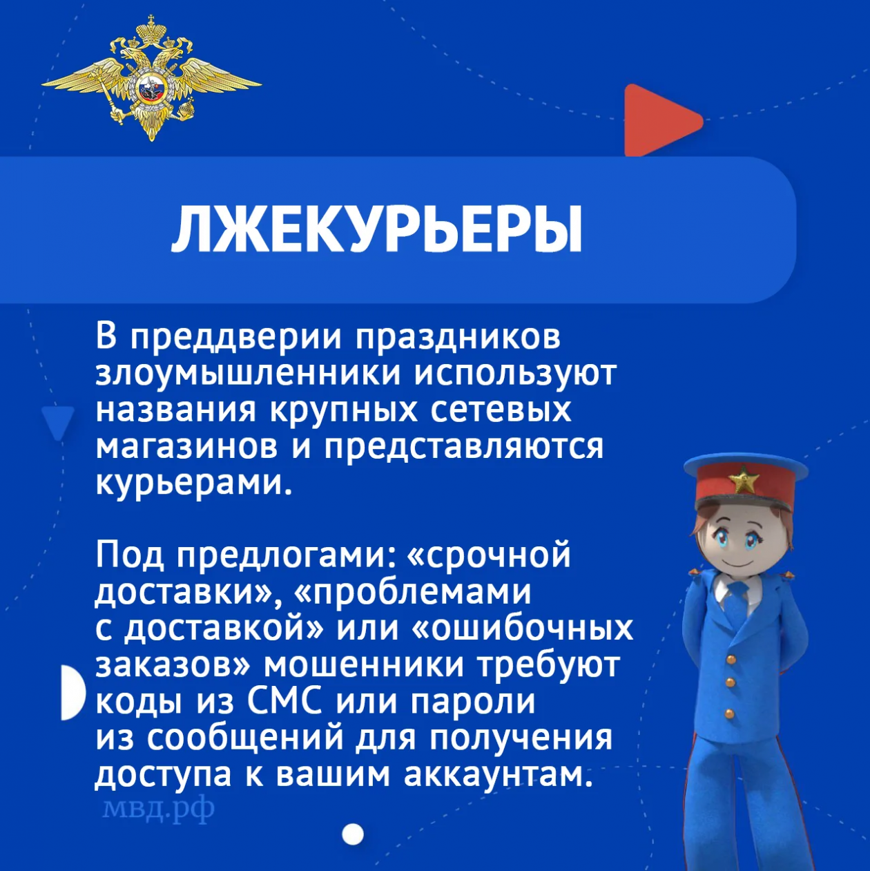 "Схема обмана такова: на телефон поступает звонок якобы от "сотрудника службы доставки" известного ретейлера. Он сообщает о "срочной доставке", "проблеме с доставкой" или "ошибочном заказе" и требует код из СМС или пароль из сообщения. Так мошенники пытаются получить доступ к чужим аккаунтам или имитируют его для создания психологического эффекта", — говорится в сообщении.