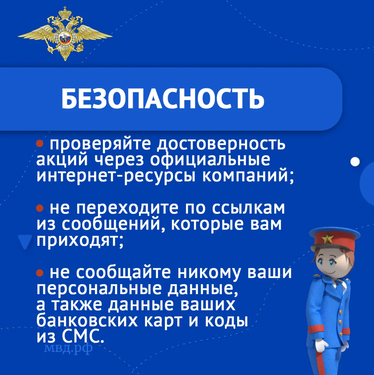 — не сообщайте данные банковских карт, коды из СМС или мессенджеров;