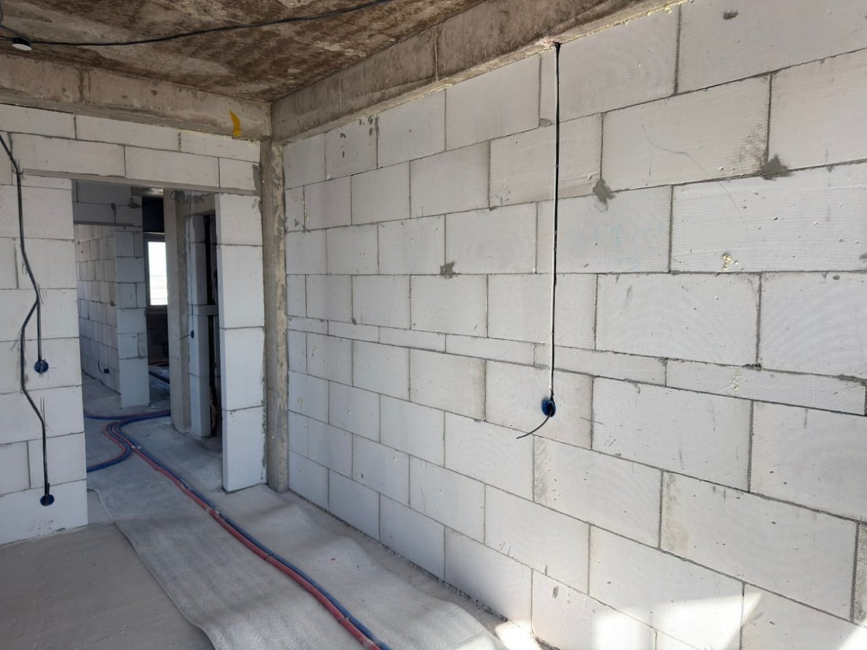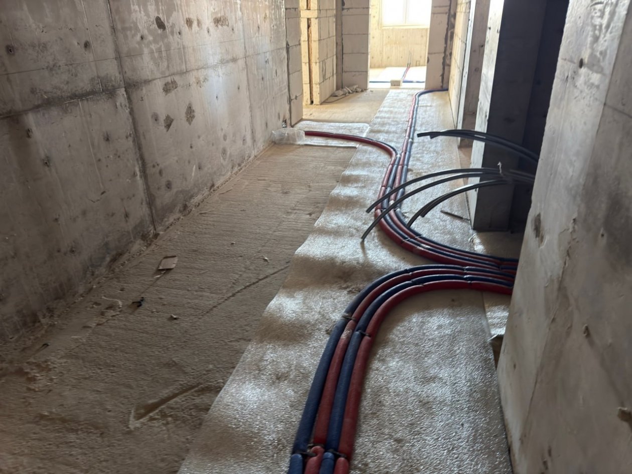 На сегодняшний день подрядная организация завершила все общестроительные работы, а также кладку межкомнатных перегородок на всех этажах строящегося комплекса. Параллельно ведется монтаж инженерных систем: работы по устройству систем водоснабжения и водоотведения в трех корпусах выполнены на 75%, а на данный момент производится монтаж электросетей. Кроме того, к зданию уже подведены наружные сети водопровода, канализации и теплоснабжения.