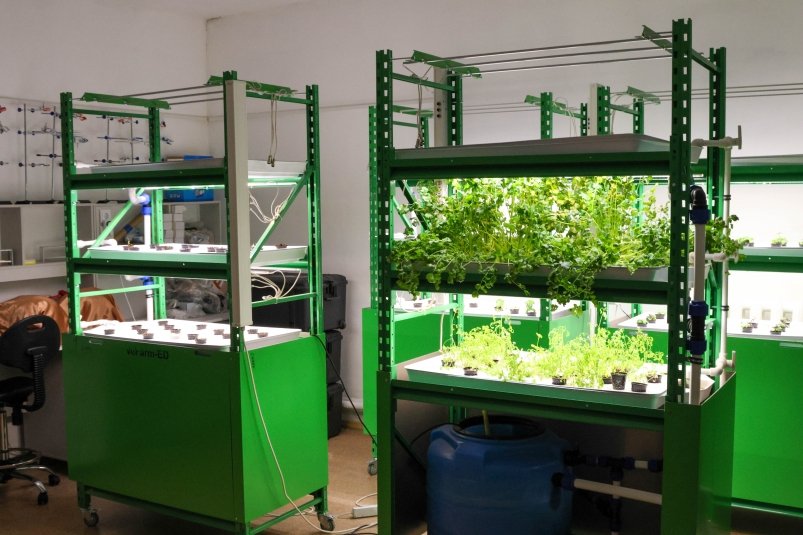 Школьники занимаются в современной лаборатории вертикальной гидропоники: изучают технологии выращивания овощей и зелени, проводят междисциплинарные эксперименты. Класс работает на базе центра выявления и поддержки одарённых детей.