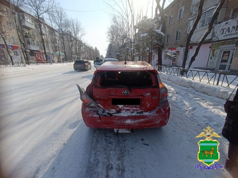 26.02.2026 в 10.08 в районе дома 35 по улице Шолом-Алейхема в Биробиджане водитель автомобиля "Тойота Ленд Крузер" не учёл безопасную дистанцию до впереди движущегося транспортного средства и состояние дорожного покрытия, совершил столкновение с автомобилем "Тойота Аква".