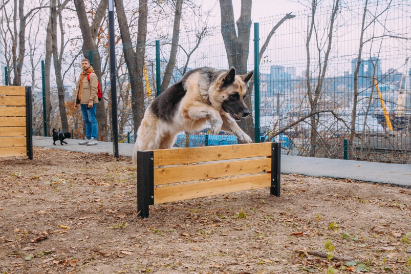 При этом минимальная площадь игровой территории должна составлять 200 квадратных метров, а дрессировочной — 1 500 квадратных метров. Покрытия площадок должны быть травмобезопасными — из песчано-гравийной смеси, прорезиненных или комбинированных материалов.