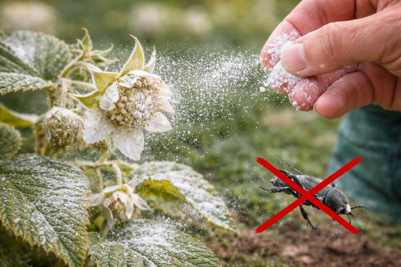 Пока малина только набирает бутоны, долгоносик уже начинает вредить. В этот момент дачники используют простой приём — обычную древесную золу. Она помогает снизить активность вредителя и одновременно поддерживает растение.