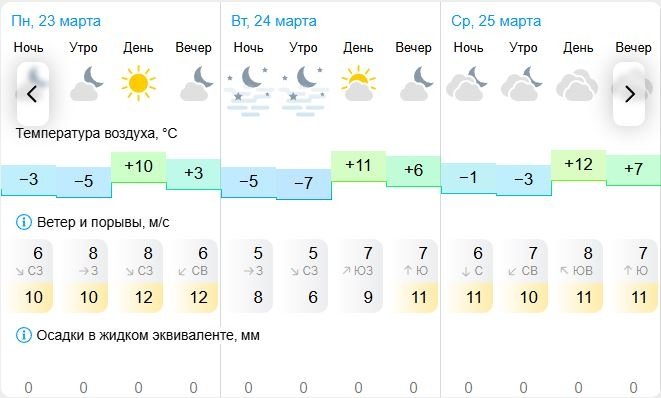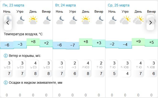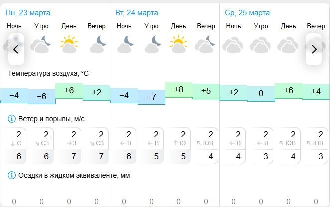 24 марта в течение суток ожидается малооблачная погода; ночью -6..-8°, днем +1..+3°, ветер слабый.
