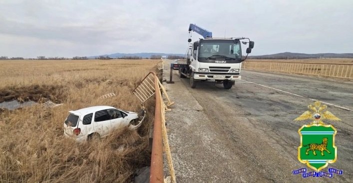 Еще одно ДТП произошло 5 апреля на автодороге "Биробиджан — Унгун -Ленинское". Водитель автомобиля "Тойота Королла Спасио" наехал на металлическое барьерное ограждение моста, после чего съехал в придорожный кювет. Автомобиль получил механические повреждения.