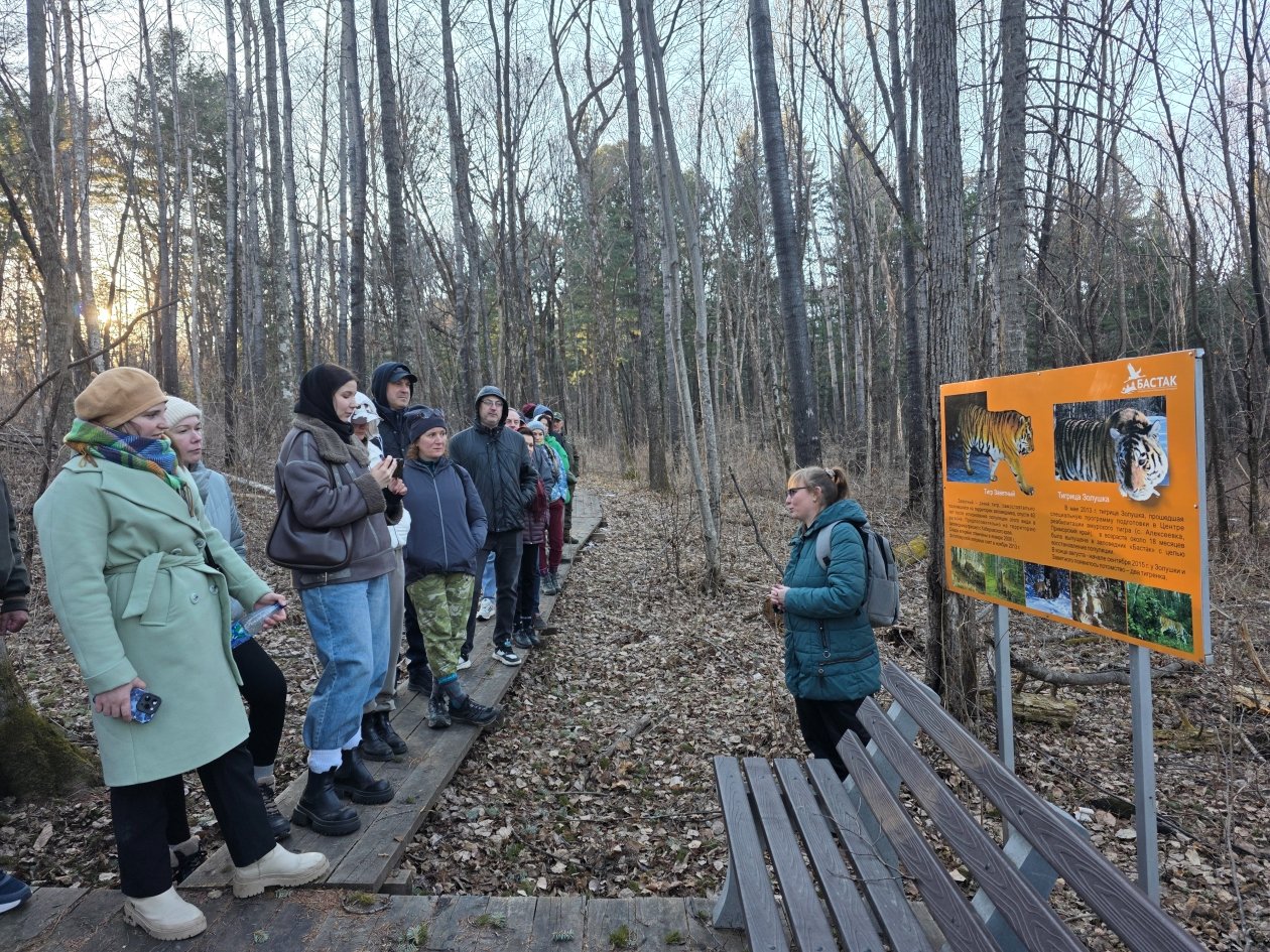 История жизни полосатых хищников на территории заповедника стала лейтмотивом прогулки. Гостям показали места регулярных выходов тигров, рассказали о методике их учёта по следам на снегу и объяснили, как фотоловушки помогают вести "перепись населения". Журналисты узнали, что "Бастак" — одна из ключевых территорий, где восстанавливается популяция краснокнижного амурского тигра.