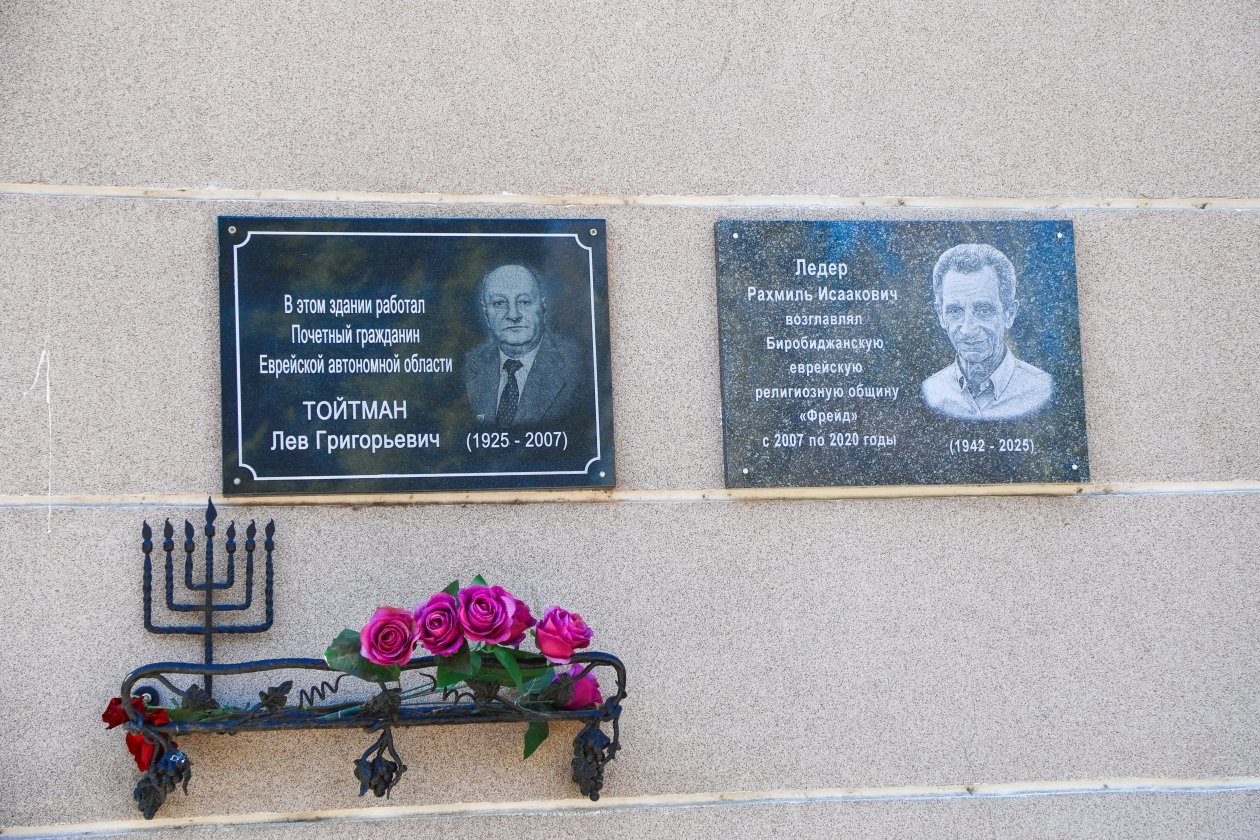 "В областном центре состоялось торжественное открытие памятной доски Роману Исааковичу Ледеру — известному в ЕАО общественному деятелю. Он родился и всю жизнь прожил в Биробиджане. Долгое время руководил дорожно-строительным управлением № 1, а с 2007 по 2020 год возглавлял общину "Фрейд", — говорится в сообщении.