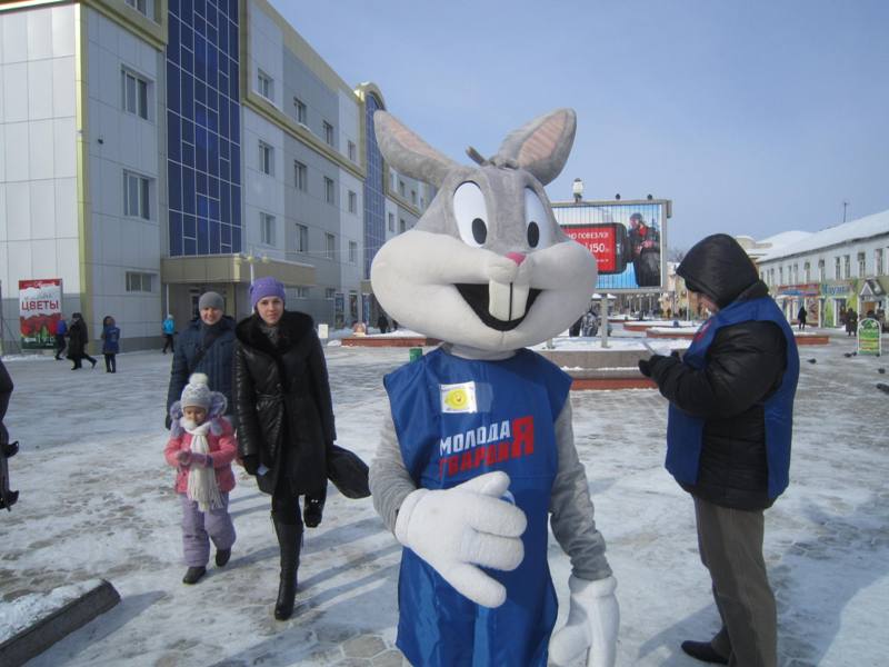 Тем, кто соглашался сфотографироваться с добрым кроликом, давали визитки. С их помощью люди смогут забрать фотографии в одном их фотосалонов города.