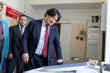 Вместе с ним в фитнес-центр пришли заместитель председателя правительства ЕАО Сергей Кривошеев и мэр Биробиджана Андрей Пархоменко.