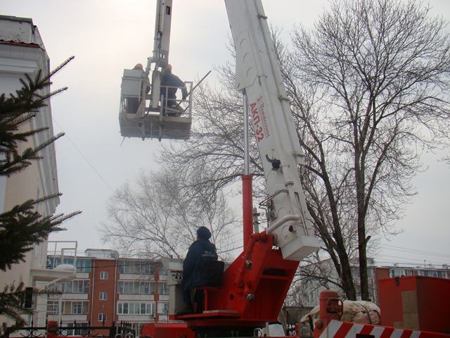 МЧС выделило пожарный подъемник для очистки крыш от снега и сосулек, Фото с места события из других источников. Фото: Автор фото: Пресс-служба ГУ МЧС России по ЕАО