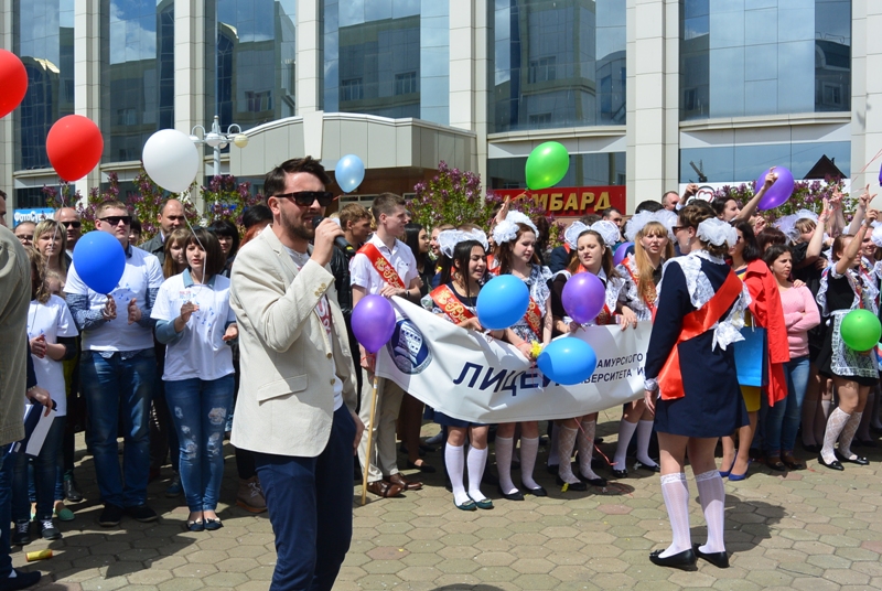 Около 300 выпускников школ и лицеев Биробиджана прошли парадом по центральным улицам областной столицы. Шествие было посвящено Последнему звонку. Перед тем, как отправиться в путь, участники акции провели танцевальную разминку и дали клятву выпускника, передает корр. ИА EAOmedia.