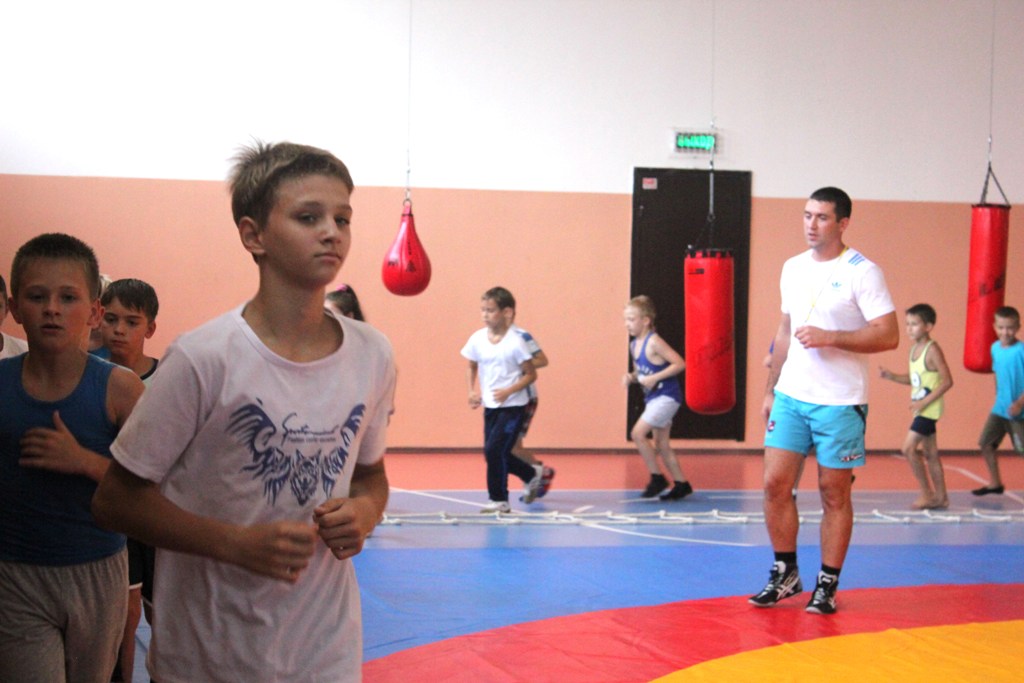 Далее для ребят была организована спортивная  разминка и отработка приемов рукопашного боя. Мальчишки и девчонки от 8 до 11 лет с удовольствием выполняли упражнения и получили массу положительных эмоций.