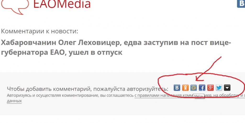 Комментарии на сайте ИА EAOMedia теперь можно оставлять только через аккаунты в соцсетях. Фото: Фото: ИА ЕАОMedia